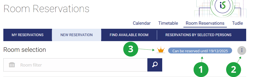 If you need to reserve a room outside the set period, please contact a person with higher-level permission. A list of these people can be found in the menu in the top right corner of the application (three dots) under the link “Who at the faculty is authorized to change the room reservation deadline?”.