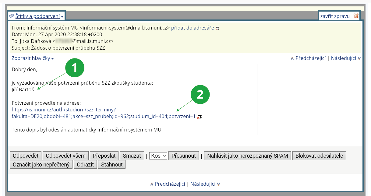 - 2.How do I confirm the record of the course of the final state examination?You can confirm the record of the final state examination via a link that will be emailed to board members. The board members will receive one email for each student. Confirmation of consent to the record of the final state examination is done directly in the IS MVŠO.